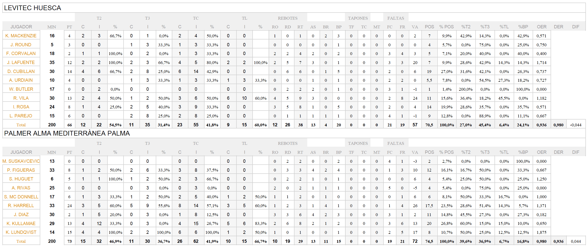 En este choque, Palmer Alma Mediterrànea Palma se enfrentaba a uno de los peores equipos en ataque (OER 0,957) y también una de las peores defensas (DER 1,047). Pese a ser también el equipo con el penúltimo puesto en ritmo de juego, la diferencia total en puntos a favor y en contra es, como no, la penúltima mejor de la competición (-8,7 puntos).