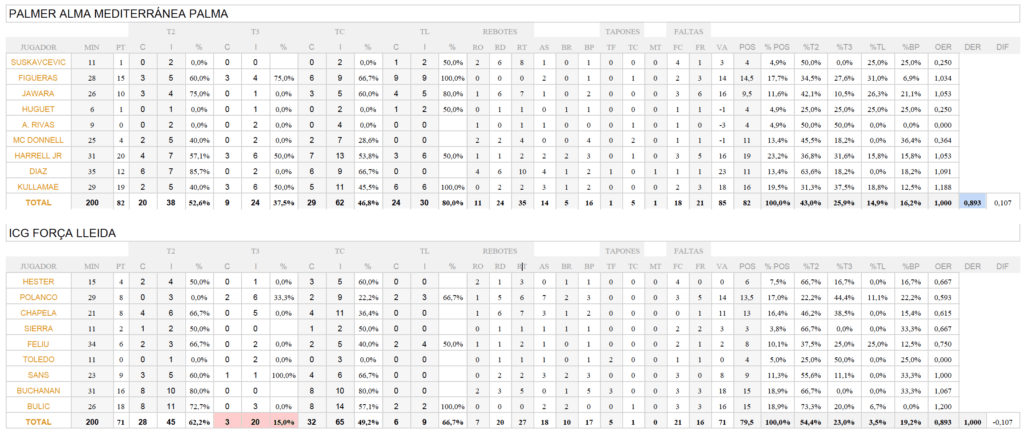 Este último parido seguía el ritmo de los tres anteriores… hasta el último cuarto, en que los de Pau Tomàs y Álex Pérez, tal vez más conscientes de que tenían que conseguir que Jawara aguantase en pista, se cerraron más y mejor. Dejaron que la presión, la ansiedad y la frustración cayese sobre las muñecas del rival, permitiendo algo más su tiro exterior (¡3/20 en T3!), pero menos balones cómodos a Buchanan y menos penetraciones de Chapela y Polanco (los ilerdenses, aun y todo, acabaron con 28/45 en T2…muchos tiros y muchas canastas. ¡Un 62% de acierto y el 55% de sus posesiones acabaron en T2!) .